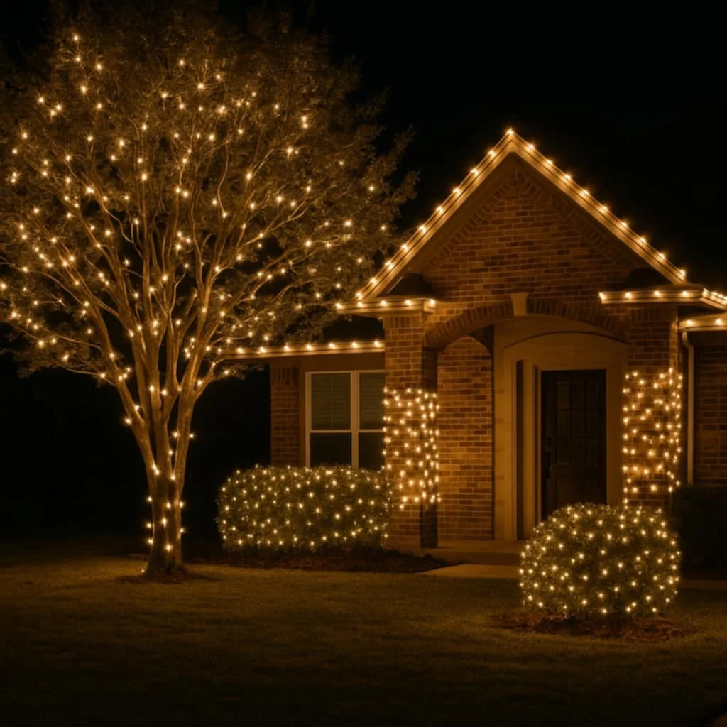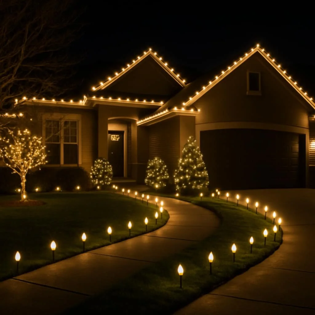 Custom design, installation, and takedown. Durable, weather-rated commercial-grade materials. Off-season storage included. Licensed, insured, and locally trusted professionals. Bring your home to life this holiday season — safe, stunning, and completely stress-free.